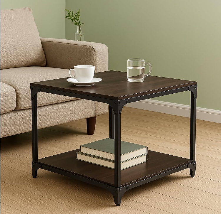 This center table for living room is constructed using a sturdy mild steel frame that provides superior strength and stability. The premium engineered wood tabletop comes in a sophisticated Dark Maple and Black finish, adding warmth and elegance to any interior décor. The square shape and clean lines give the table a contemporary appeal, making it suitable for modern, minimalist, and industrial-style interiors. Whether placed in a living room or used among stylish cafe tables, it blends effortlessly with different décor themes.